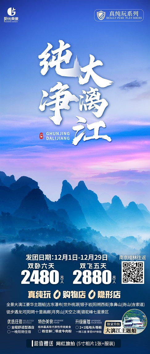 备注:桂林为国家三线以下旅游城市,酒店各项标准偏低,主要以卫生舒适为主,提前做好心理准备哦!如客