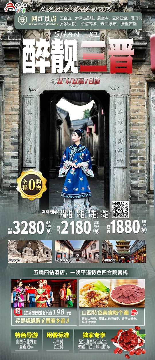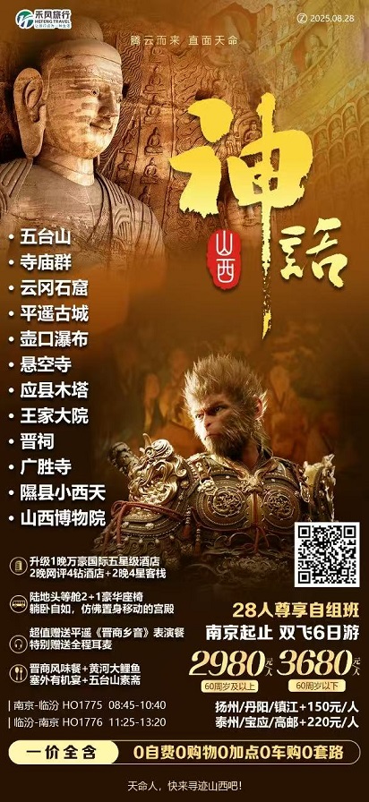 出发城市:南京,目的城市:山西