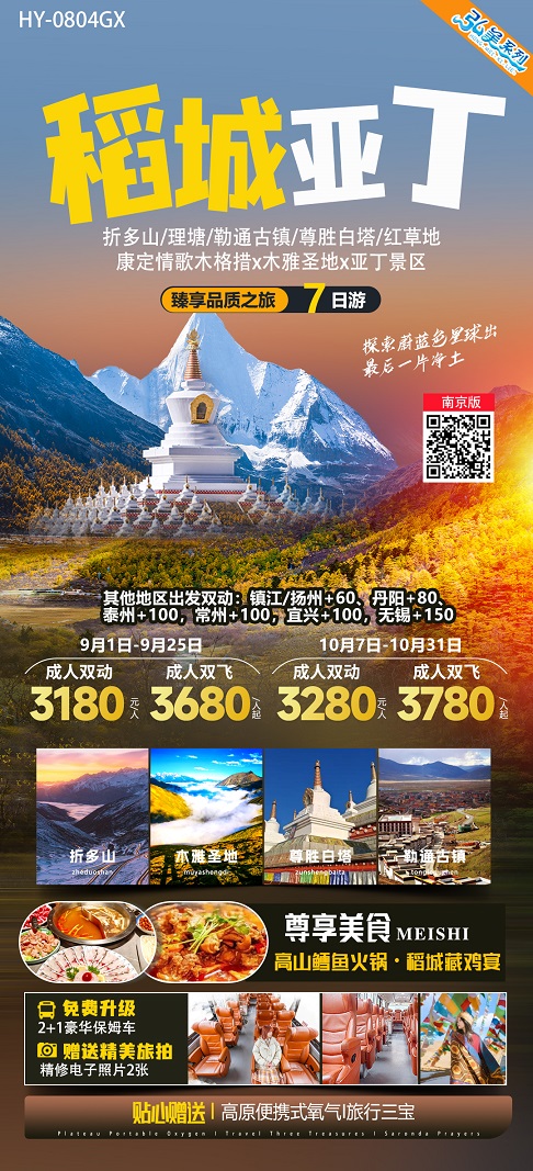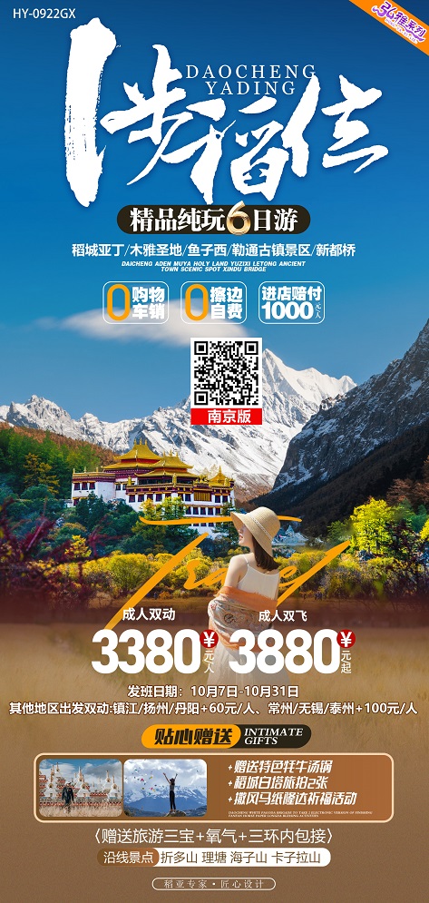 出发城市:南京,目的城市:稻城亚丁