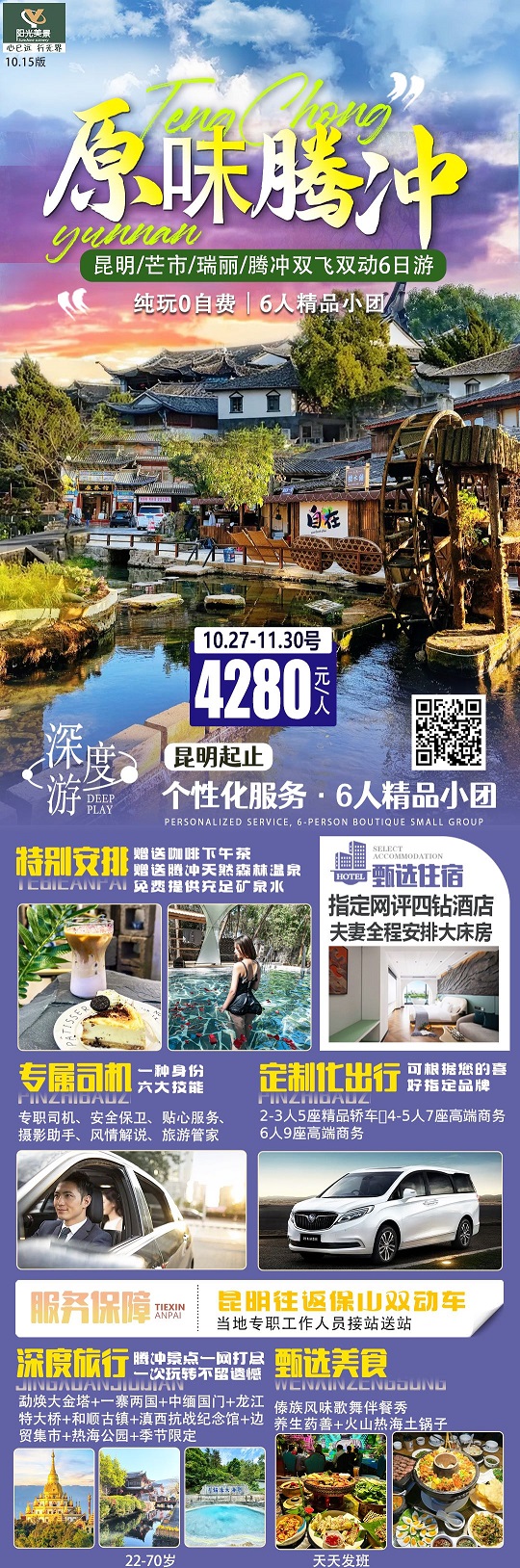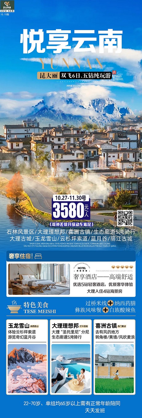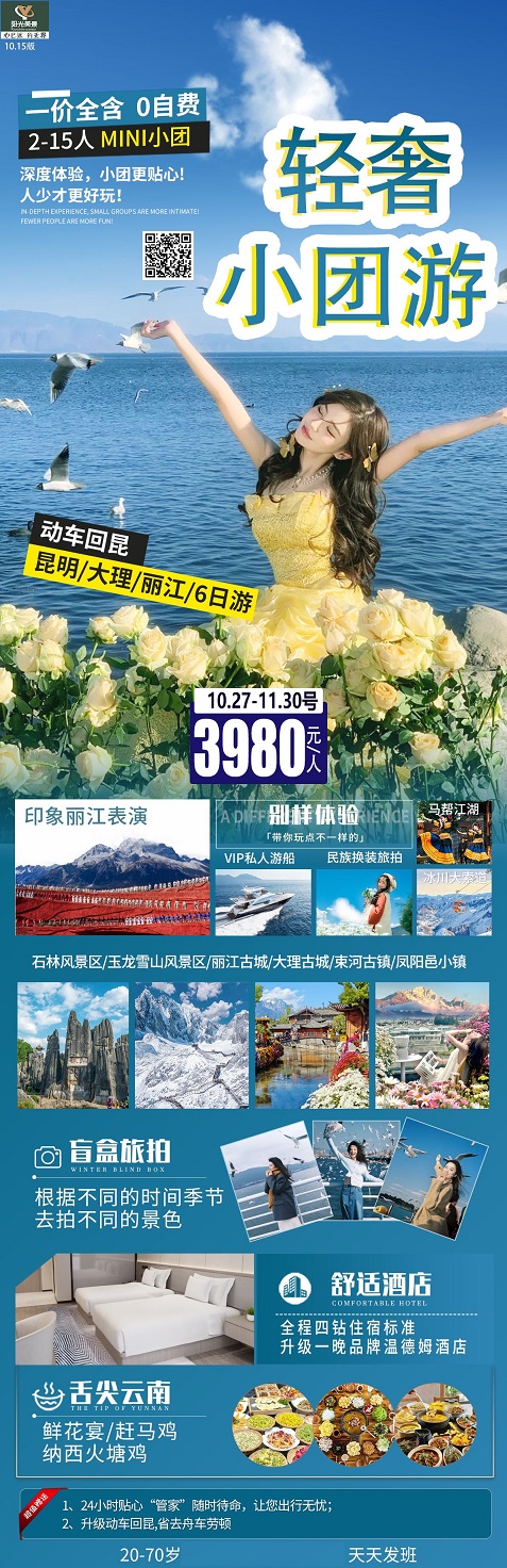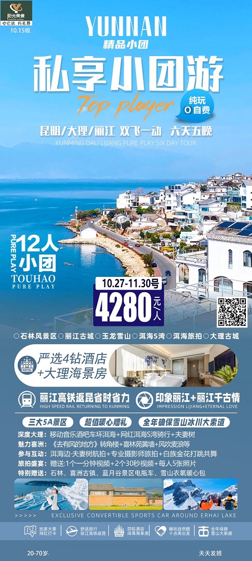 【私享小团游:云南昆明大理丽江双飞一动6日游 12人纯玩团0自费】.行程