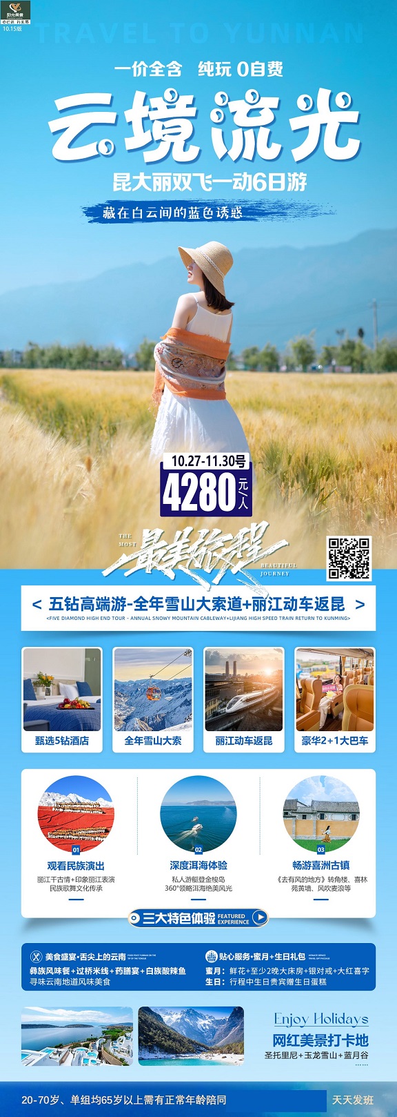 【云境流光:云南昆明大理丽江双飞动车6日游 昆明2晚慢生活体验】.行程