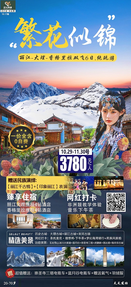【繁花似锦:南京直飞丽江+大理+香格里拉纯玩双飞6日 4钻酒店+双演出】.行程