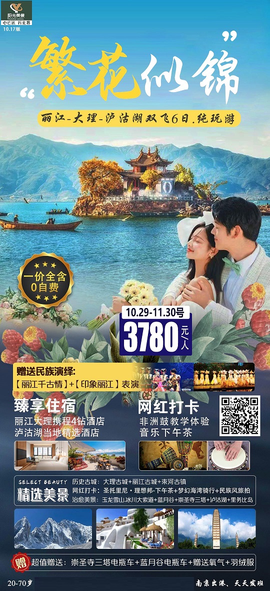 【繁花似锦:南京直飞丽江+大理+泸沽湖纯玩双飞6日 4钻酒店+双演出】.行程