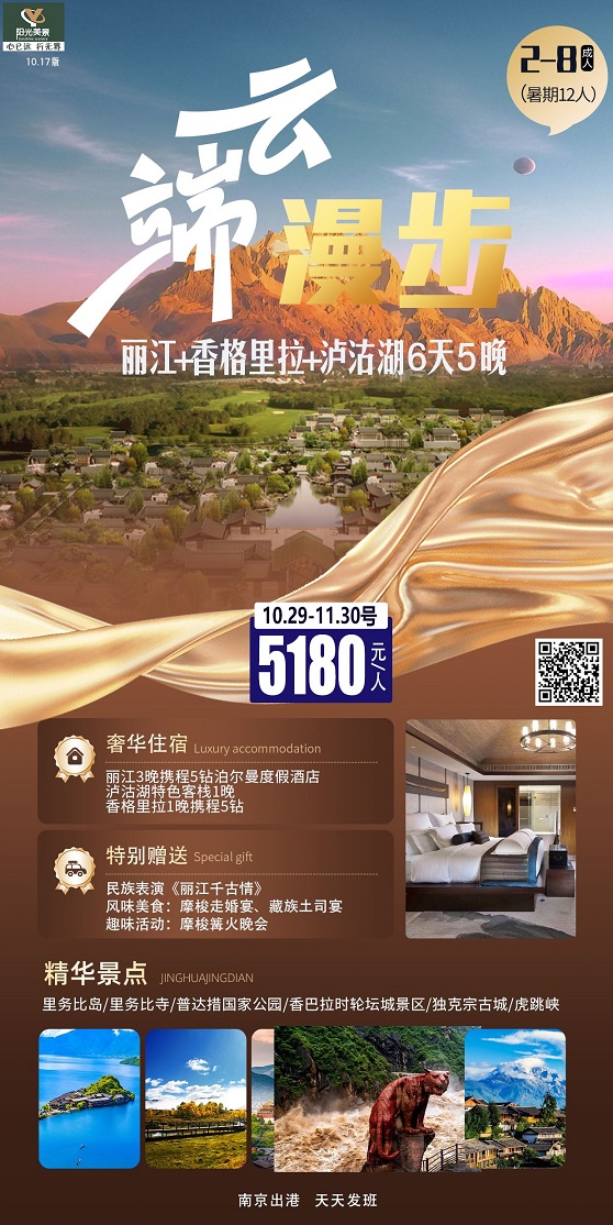 【云端漫步: 南京直飞丽江 云南丽江香格里拉泸沽湖双飞6日 2-8人小团】.行程