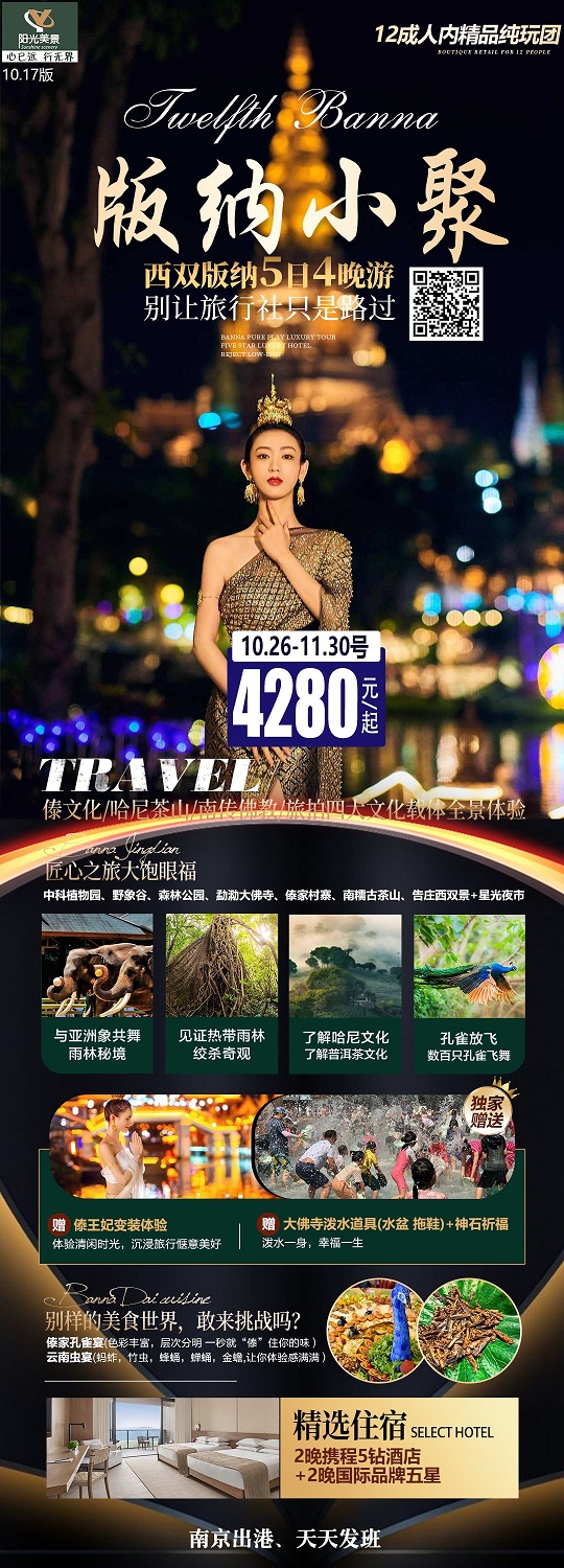 【版纳小聚:南京直飞版纳5日精品小团 2晚5钻+2晚国际五星酒店】.行程