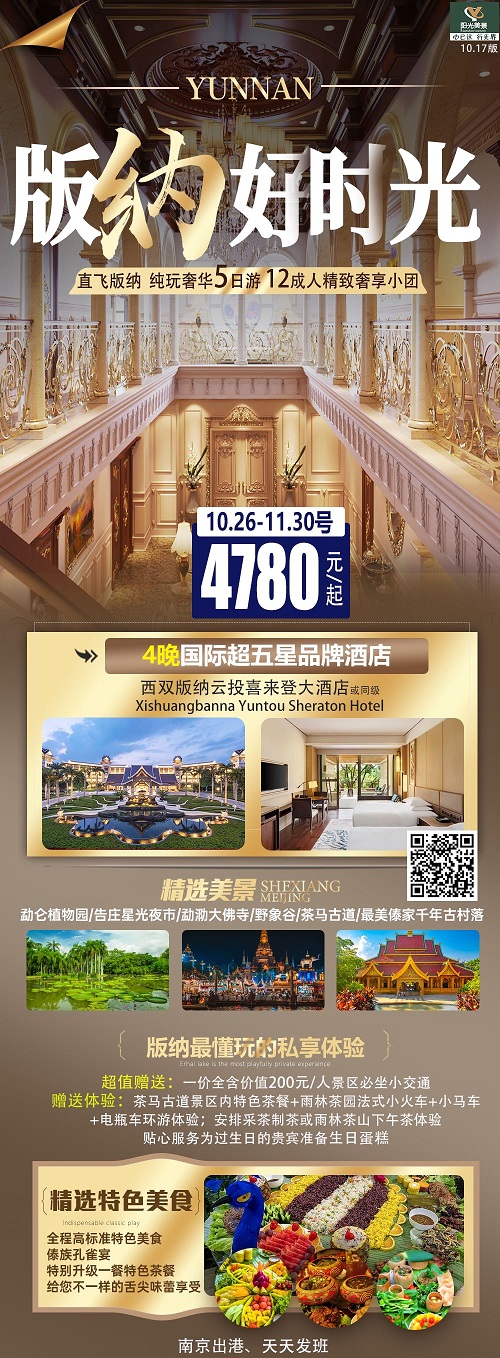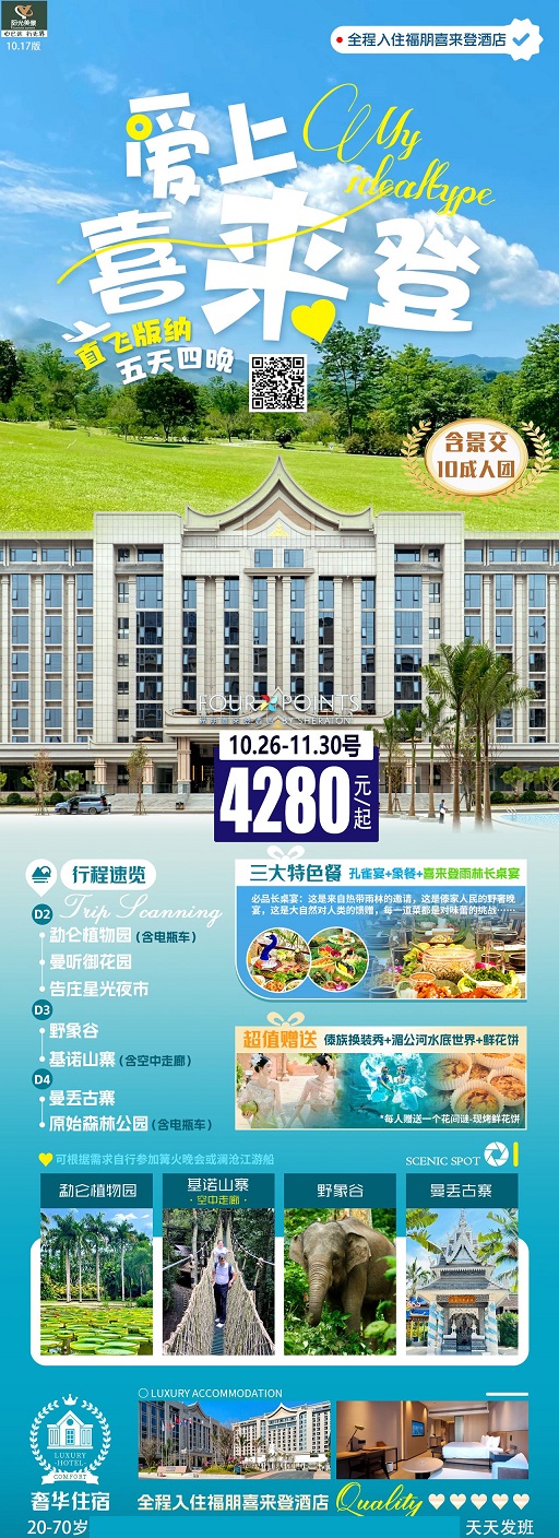 【爱上喜来登:南京直飞版纳双飞5日游 指定入住福朋喜来登酒店】.行程