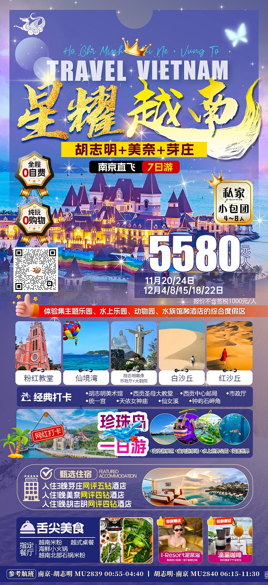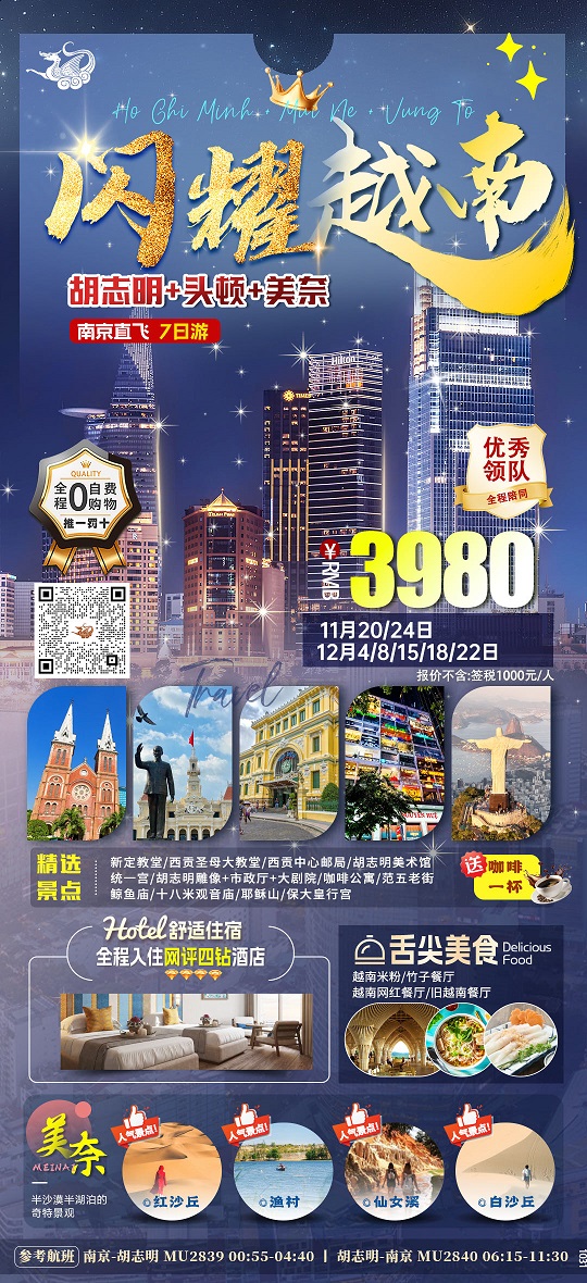 11-12月【越南:胡志明 美奈 头顿 芽庄 河内 南京直飞】线路报价