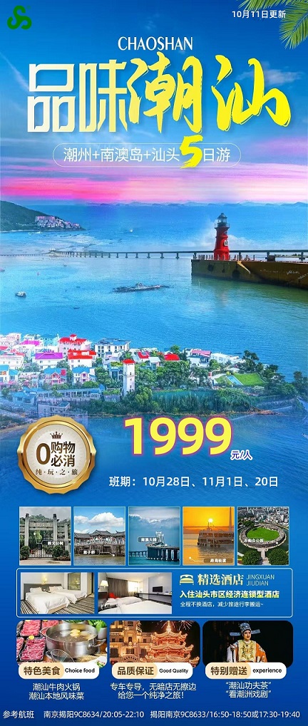 线路名称:10-11月【潮汕:南澳岛 潮州 汕头】旅游线路及报价