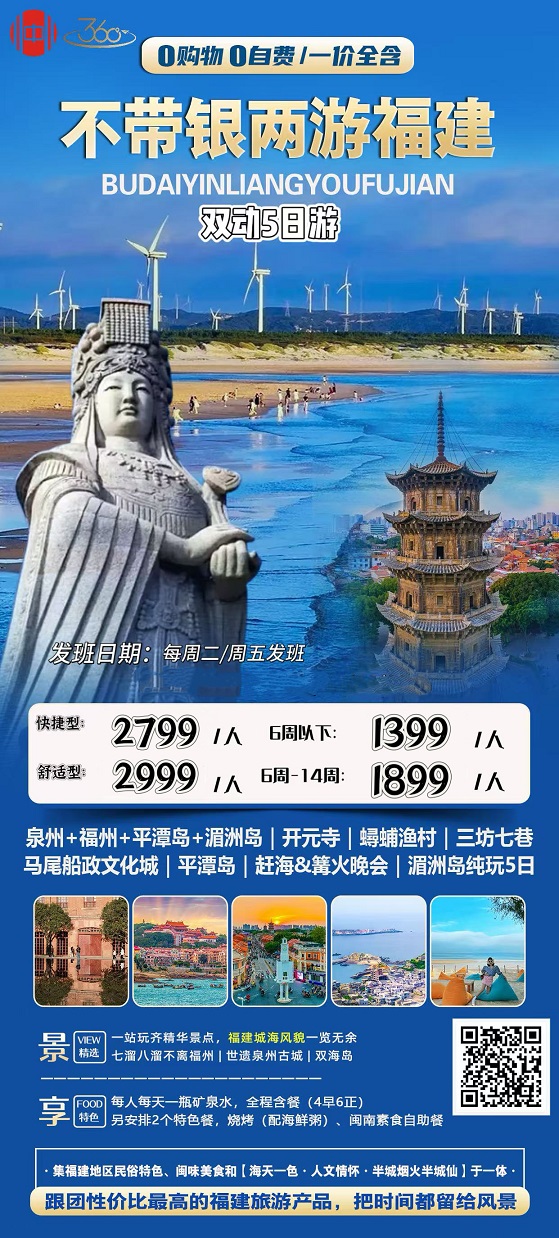 线路名称:11月【福建:福州 平潭岛 白水洋 霞浦 太姥山 泉州 东山岛】线路及报价