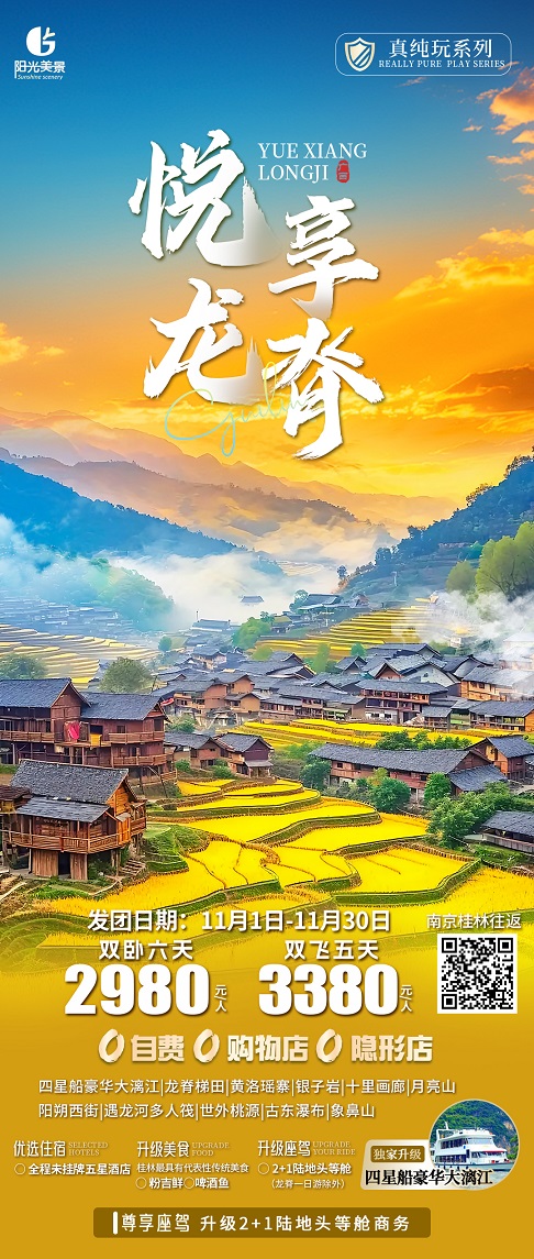 用车:桂林当地空调VIP旅游车,每人一正座(21座以下的车型均无行李箱);