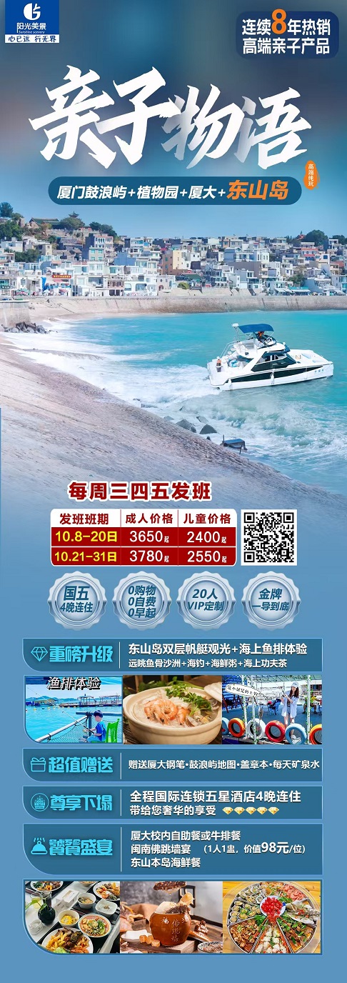 【亲子物语厦门:东山岛 鼓浪屿 网红植物园 东山岛帆艇观光5日游 4晚五星酒店】.行程