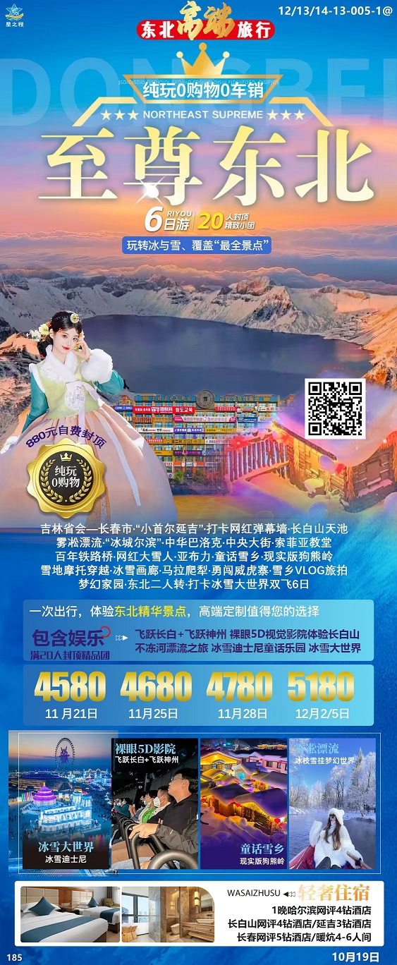 线路名称:11-12月【东北:哈尔滨 长白山 延吉 长春 漠河】线路及报价