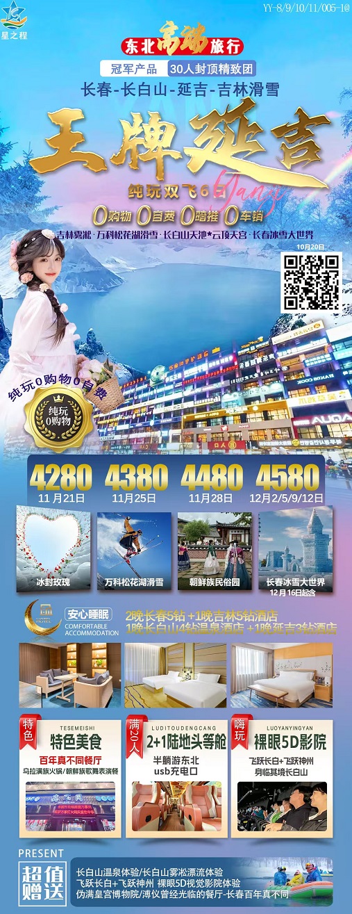 【王牌延吉:长春 长白山 延吉 吉林滑雪双飞6日游 0购物0自费】.行程