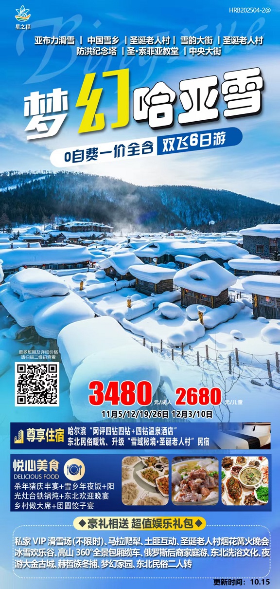 11-12月【东北:哈尔滨 长白山 延吉 长春 漠河】线路及报价