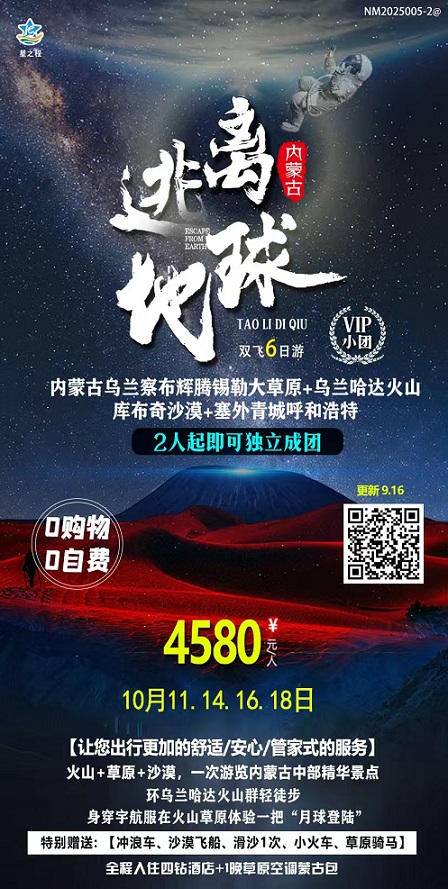 【逃离地球:内蒙古辉腾锡勒大草原 乌哈达火山库布奇沙漠 呼和浩特双飞6日】.行程