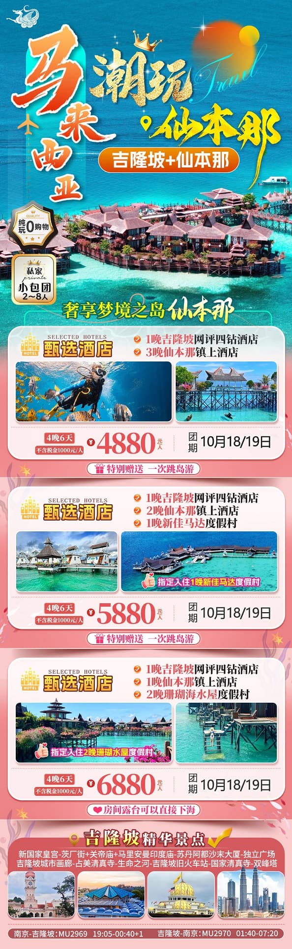线路名称:9-12月【仙本那-南京直飞】线路报价