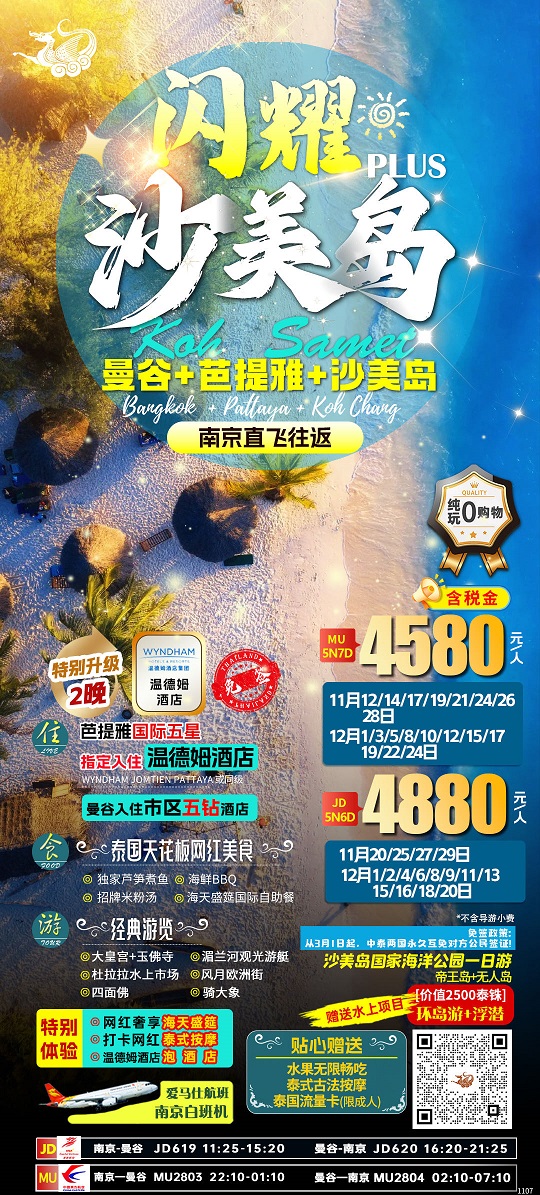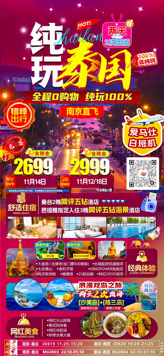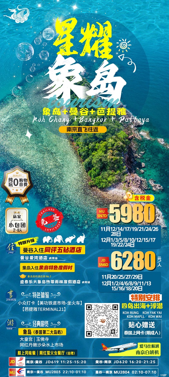 【潮玩双岛:泰国曼谷芭提雅+沙美岛+象雅岛6-7日游 纯玩0购物】.行程