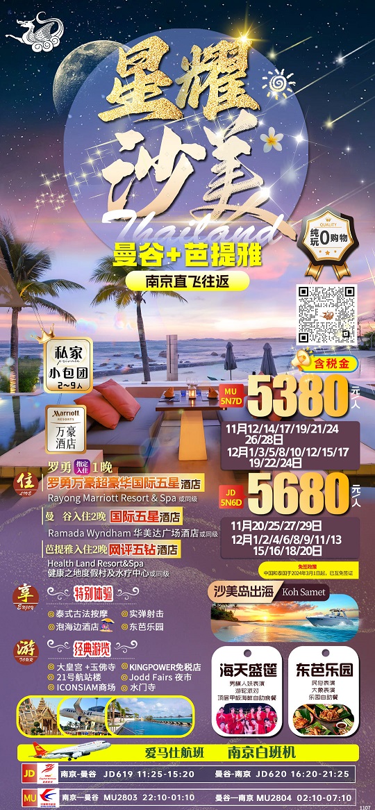 【星耀暹罗:泰国曼谷芭提雅+沙美岛6日游 2-8人小包团】.行程