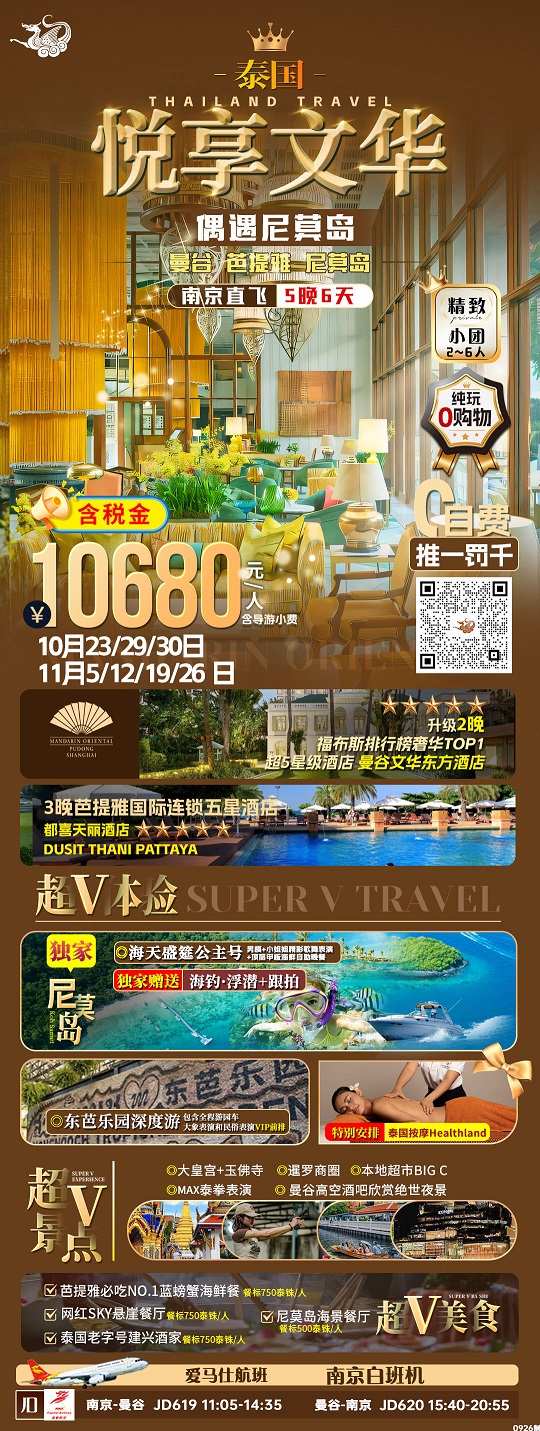 【星耀曼普:曼谷+普吉5晚6天私家小包团 1晚曼谷+4晚普吉五钻酒店】.行程