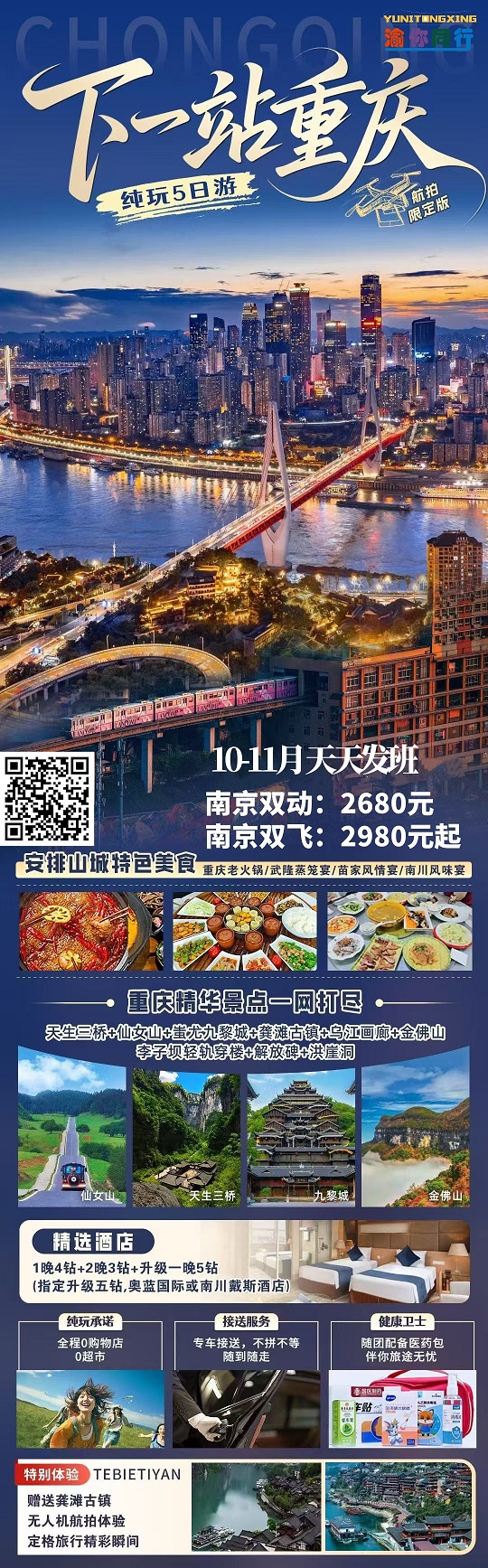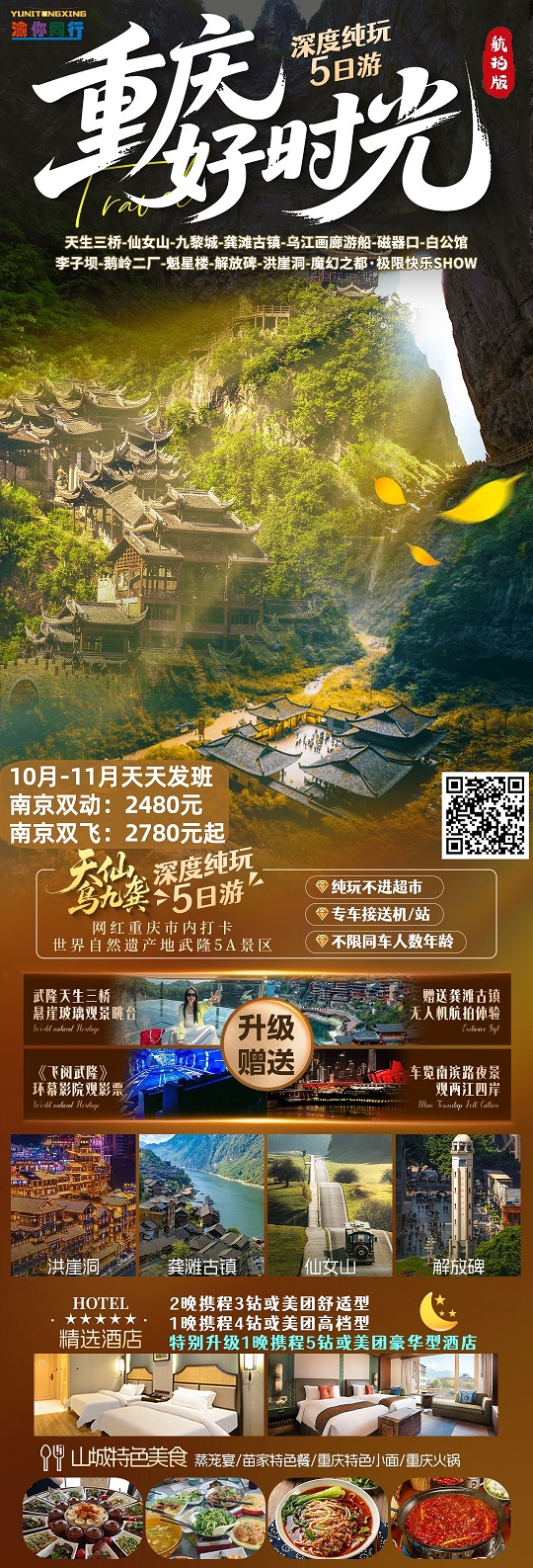 【下一站重庆:重庆武隆+乌江画廊+金佛山+魔幻山城纯玩5日游】.行程