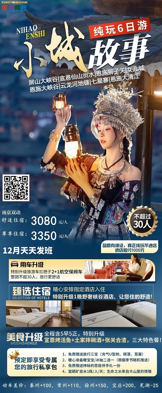 【洞见屏山:恩施大峡谷 清江大峡谷 女儿城 腾龙洞 屏山峡谷纯玩6日游】.行程