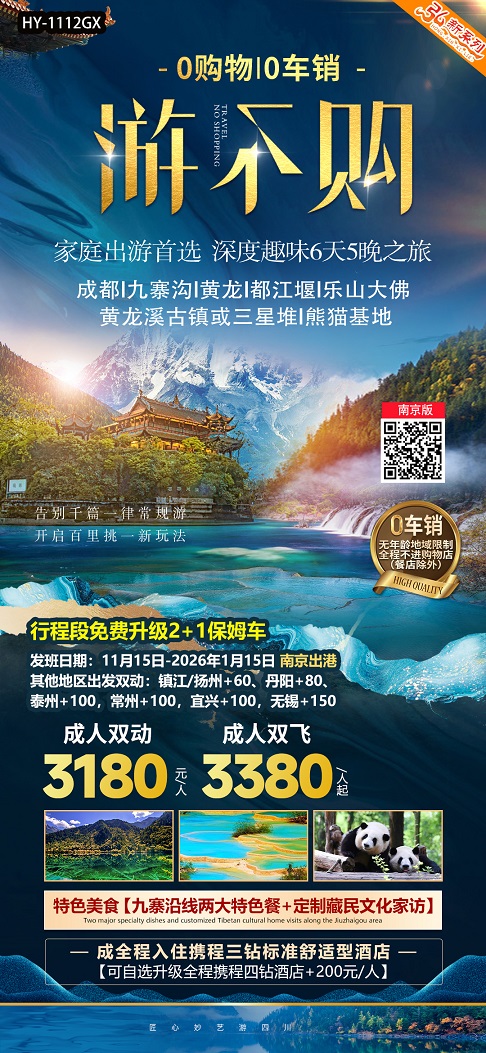 【游不购:成都+九寨沟+黄龙+都江堰+三星堆+熊猫基地纯玩6日游】.行程