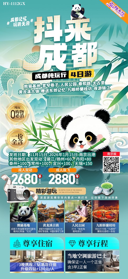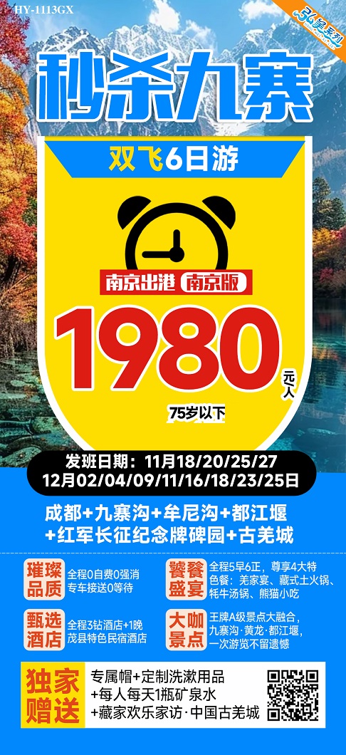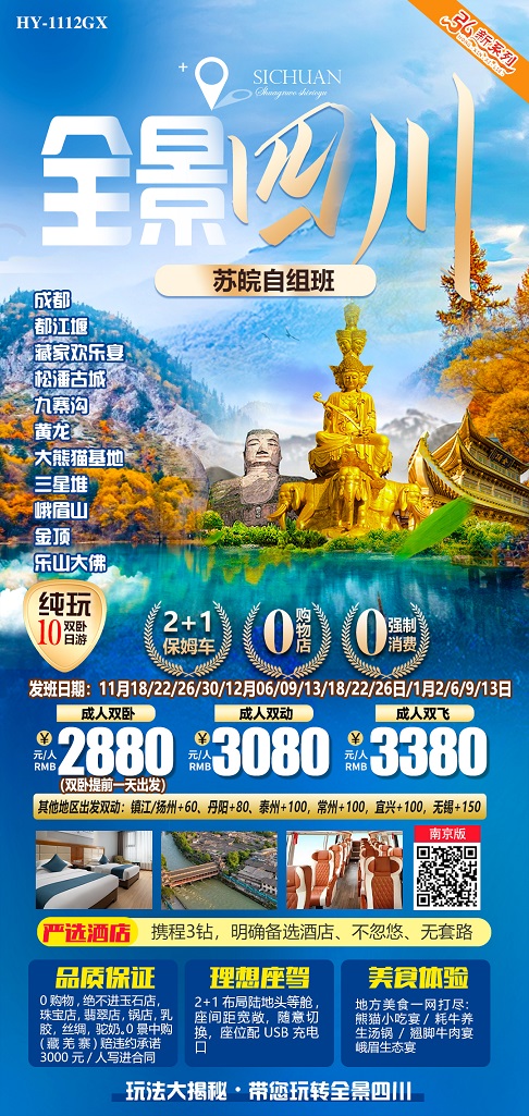 12月-1月【四川:成都 九寨沟 黄龙 乐山 峨眉山 都江堰 青城山】线路及报价-中国康辉南京国际旅行社有限责任公司