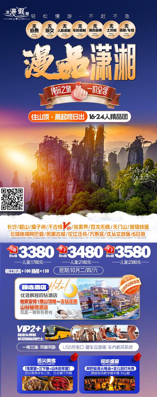 10月【湖南:张家界 凤凰古城 长沙】线路及报价
