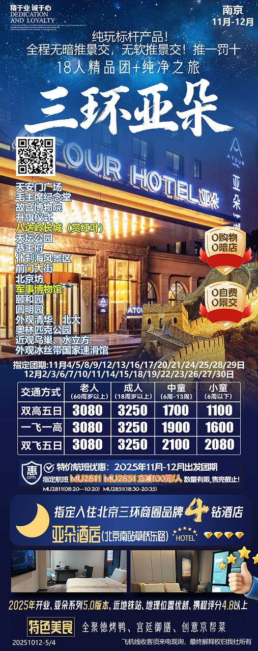 【三环亚朵:北京5日游 18人精品团 指定入住三环商圈品牌4钻酒店】.行程