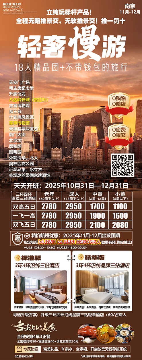 【轻奢慢游:北京5日游 0购物0自费 三四环沿线三钻酒店 18人精品小团】.行程