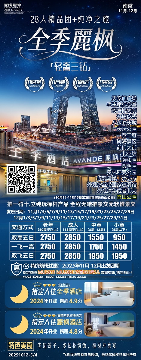 【绚丽全景全陪班:北京5日游 住全季酒店 一价全含】.行程