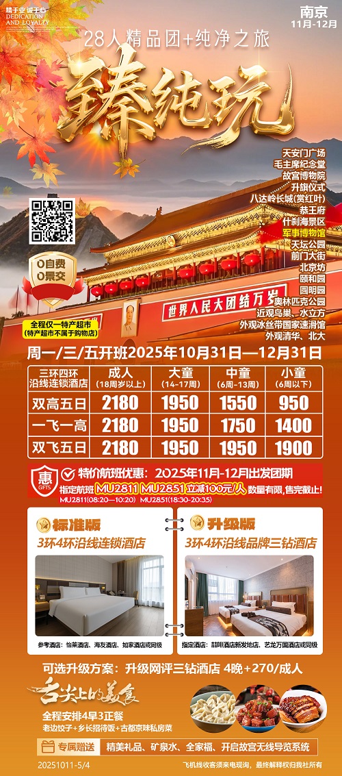 【臻纯玩:北京5日品质游 0自费 进一个土特产店 三环四环沿线酒店】.行程