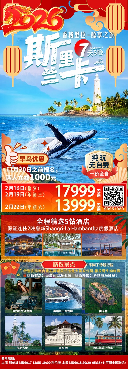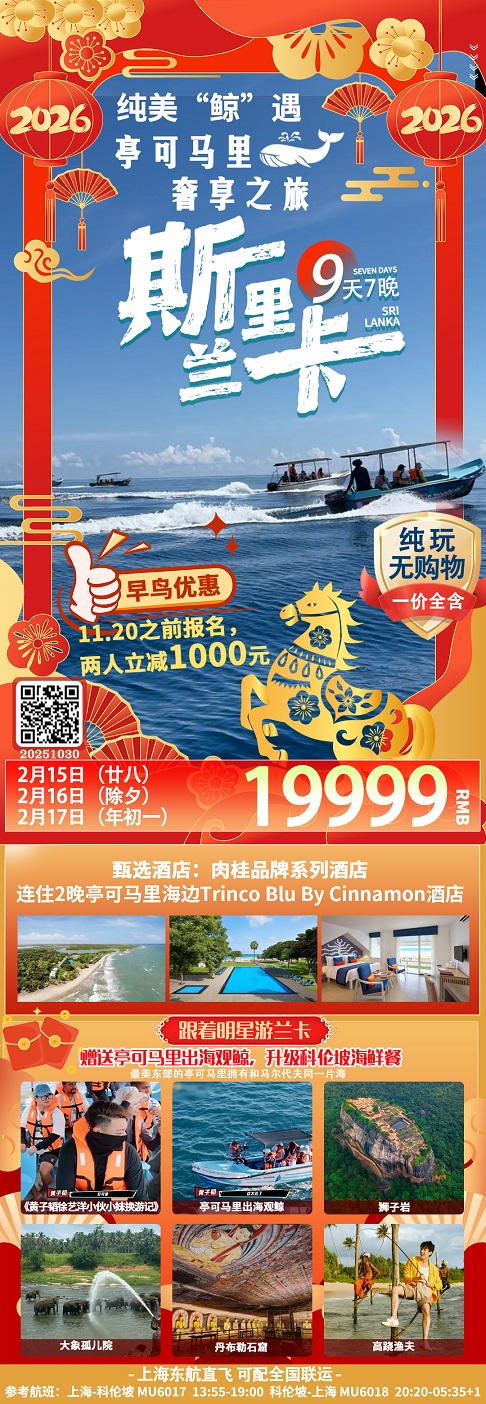 线路名称:春节【斯里兰卡】2月14日-2月24日报价