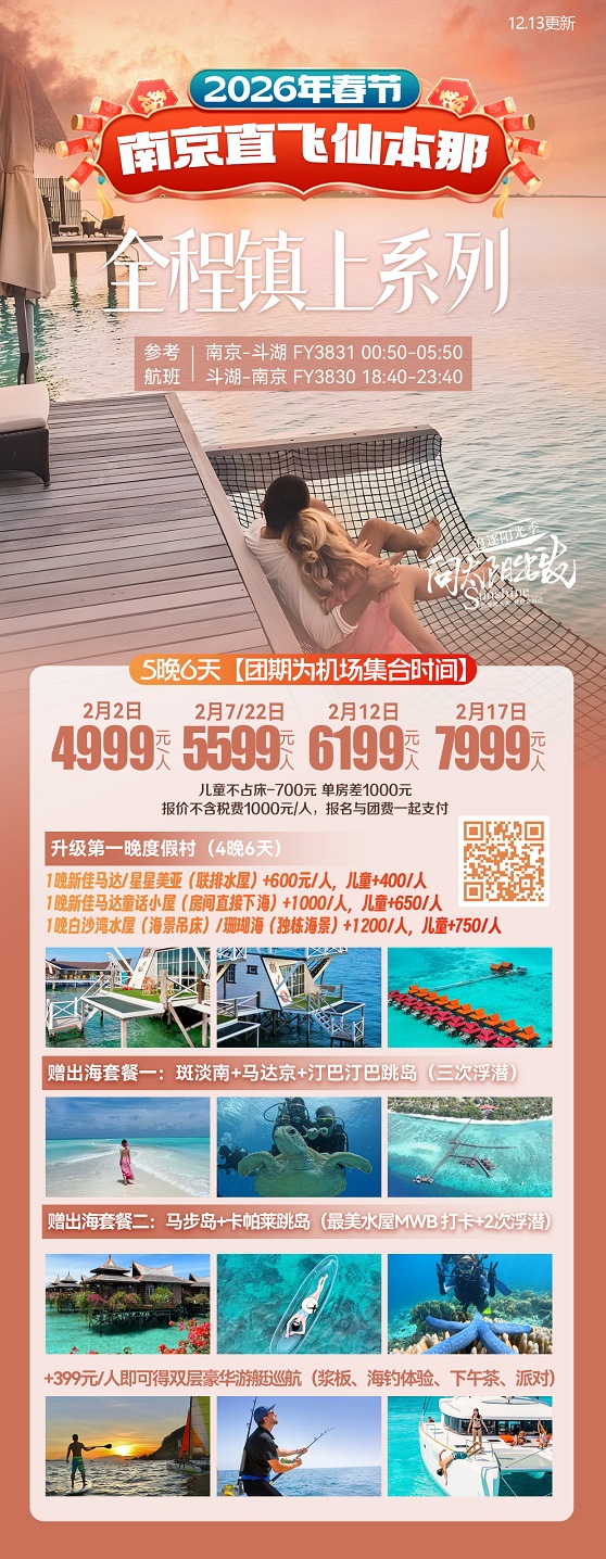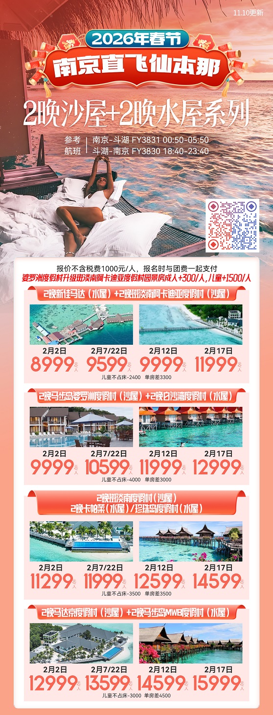 线路名称:春节【仙本那-南京直飞】2月2日-2月22日报价