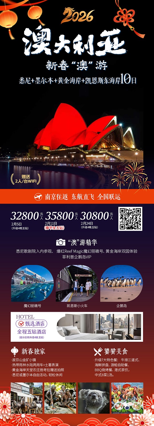 线路名称:1-2月含春节【澳大利亚-南京往返】线路报价