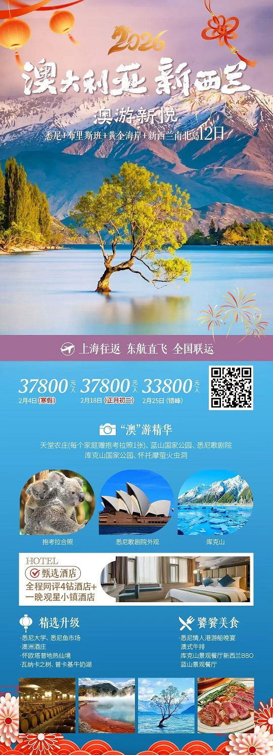 当前位置:首页 >> 国内长线 >> 1-2月含春节【澳大利亚-南京往返】线路报价