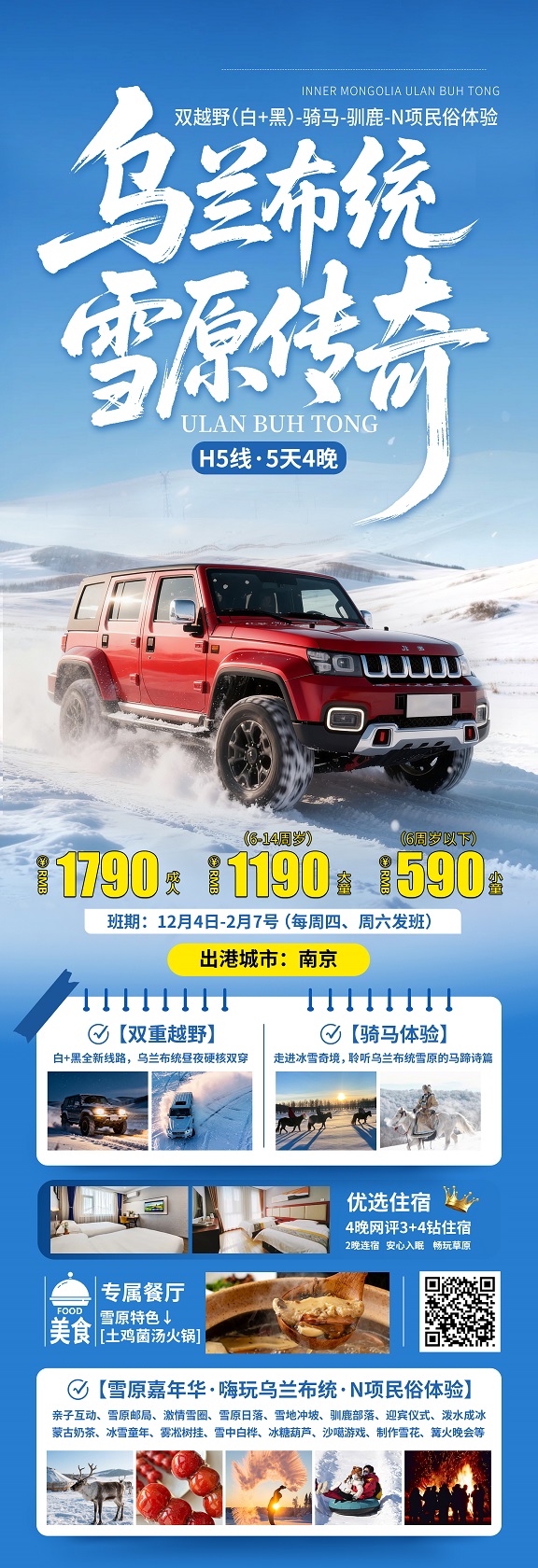 线路名称:12月-2月【雪原乌兰布统:滑雪+冰雪体验】线路报价