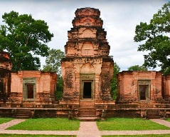 【女王宫】 女王宫位于通王城东北约 21 公里处荔枝山附近 , 是吴哥古迹中风格独特、精致的建筑之一 , 以艳丽的色彩和精美的浮雕著称于世 , 并被誉为“吴哥艺术宝石 ”。 BanteaySrei 意为“女人的城堡 ” , 据 猜测是由女性修建和雕刻的 。 它的墙壁 、 立柱、 门楣等建筑表面几乎完全被浮雕覆盖 , 没有一点空隙。这 些浮雕造型繁复圆润 , 线条纤巧柔美 , 令人赞叹不已 , 其中仙女阿 卜娑罗 ( Apsara ) 优雅的姿态尤为吸引 人 , 与吴哥寺的阿 卜娑罗浮雕齐名。 由于女王宫的名气过大 , 是吴哥窟“外圈一日游 ”的必到之处 , 每天 游客众多 ,尤其是上午。