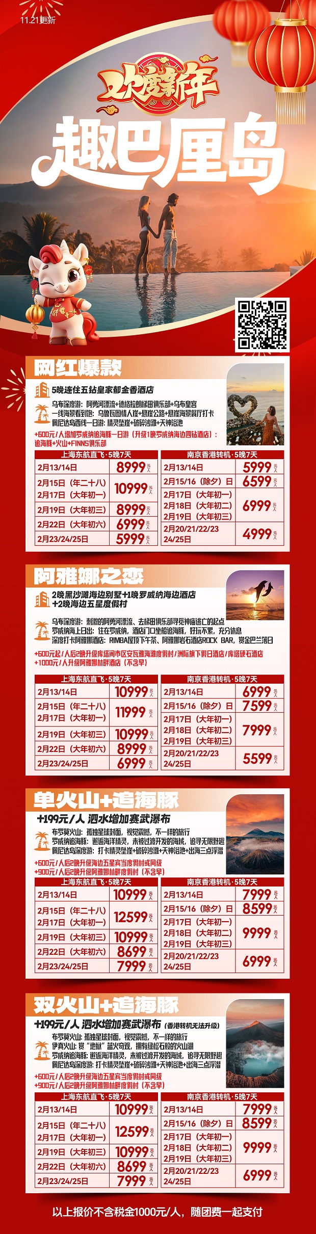 线路名称:春节【巴厘岛】2月13日-2月25日报价