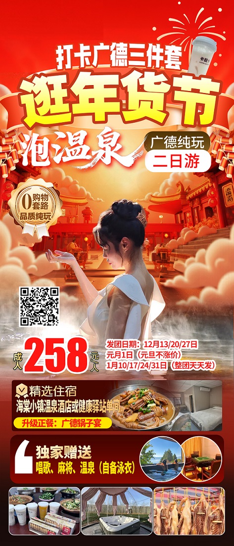 12月-1月【广德纯玩2日游:打卡广德三件套、逛年货节、泡温泉】318元