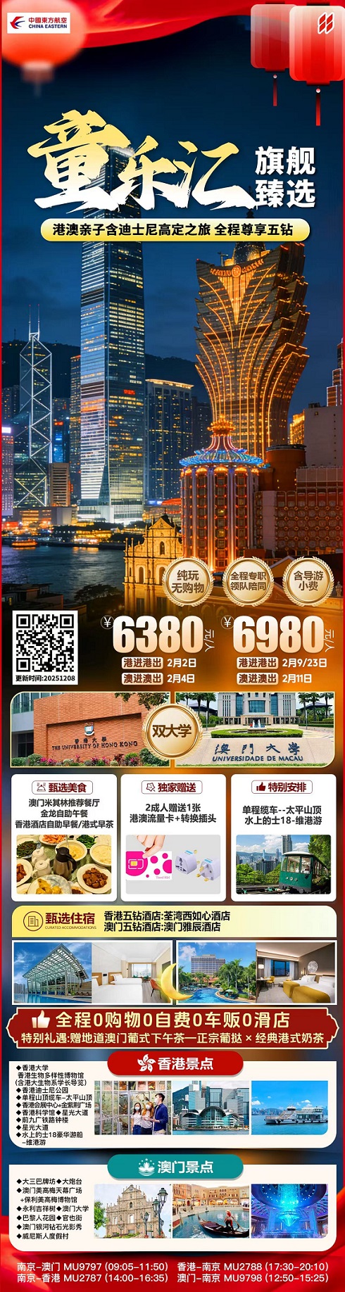 线路名称:2月春节【香港澳门】2月1日-2月24日报价
