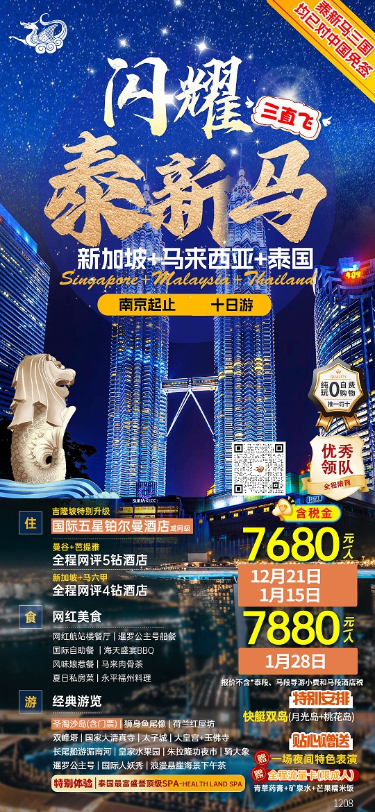 线路名称:12月-2月春节【泰新马连线:泰国 新加坡 马来西亚】线路及报价