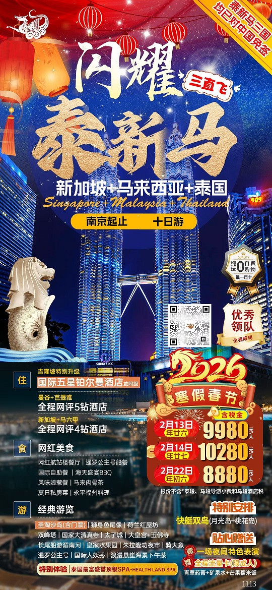 12月-2月春节【泰新马连线:泰国 新加坡 马来西亚】线路及报价