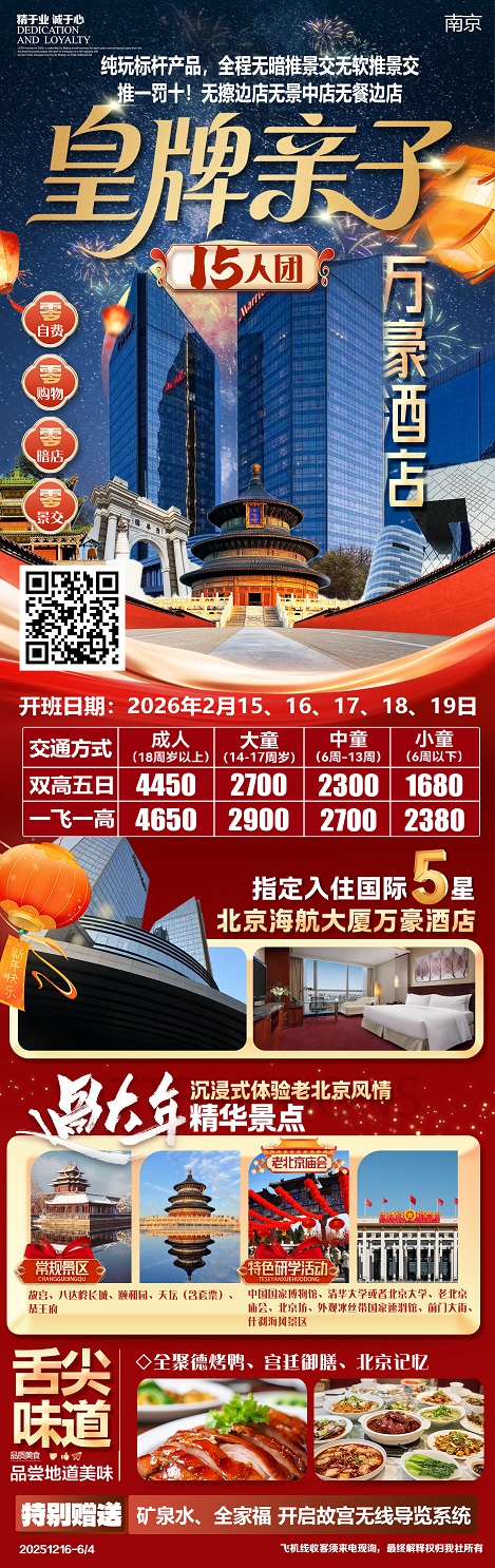【皇牌亲子:北京5日高端游 入住国际五星酒店 0购物0自费 15人精品团】.行程