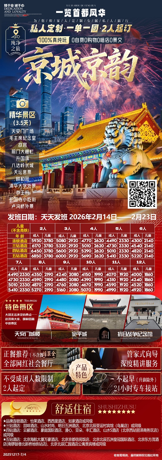 【轻奢慢游:北京5日游 三四环沿线三钻酒店 18人精品团 0购物0自费】.行程