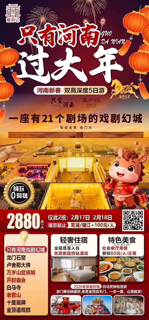 春节【河南:少林寺 云台山 龙门石窟 郭亮村 老君山】2月17日-18日报价