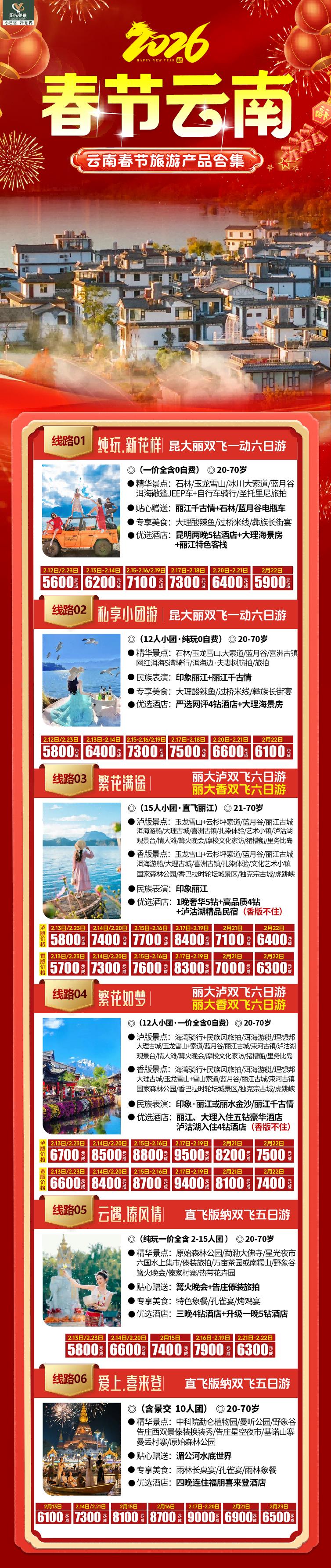 线路名称:春节【云南:昆明 大理 丽江 香格里拉 版纳 泸沽湖】线路及报价