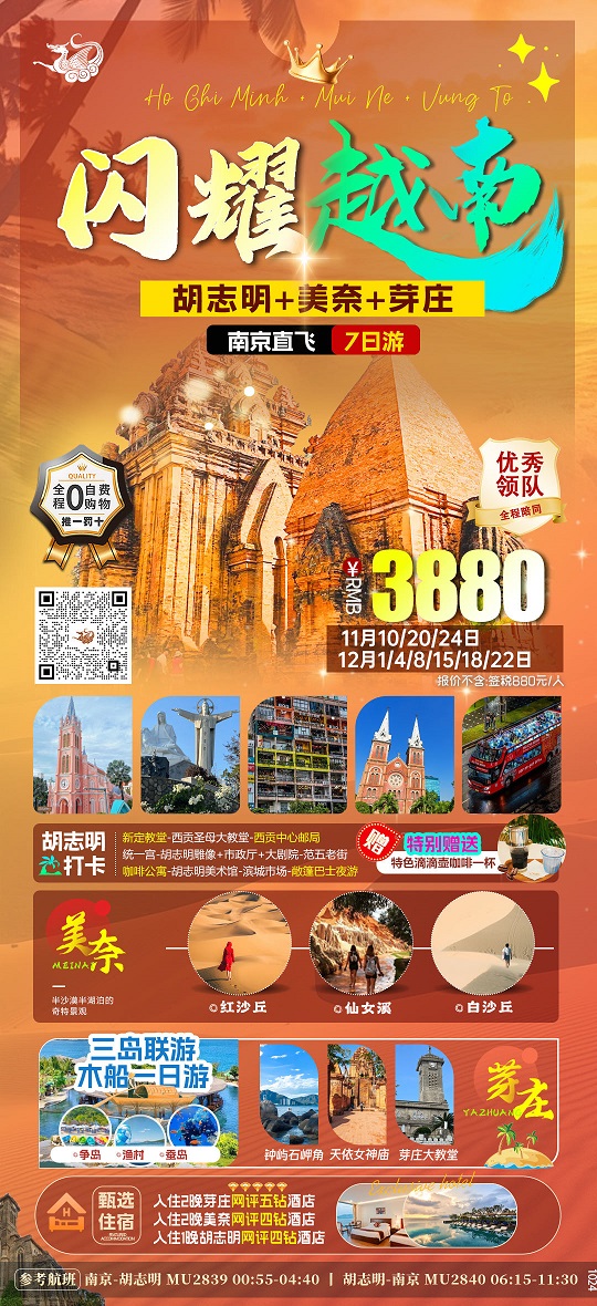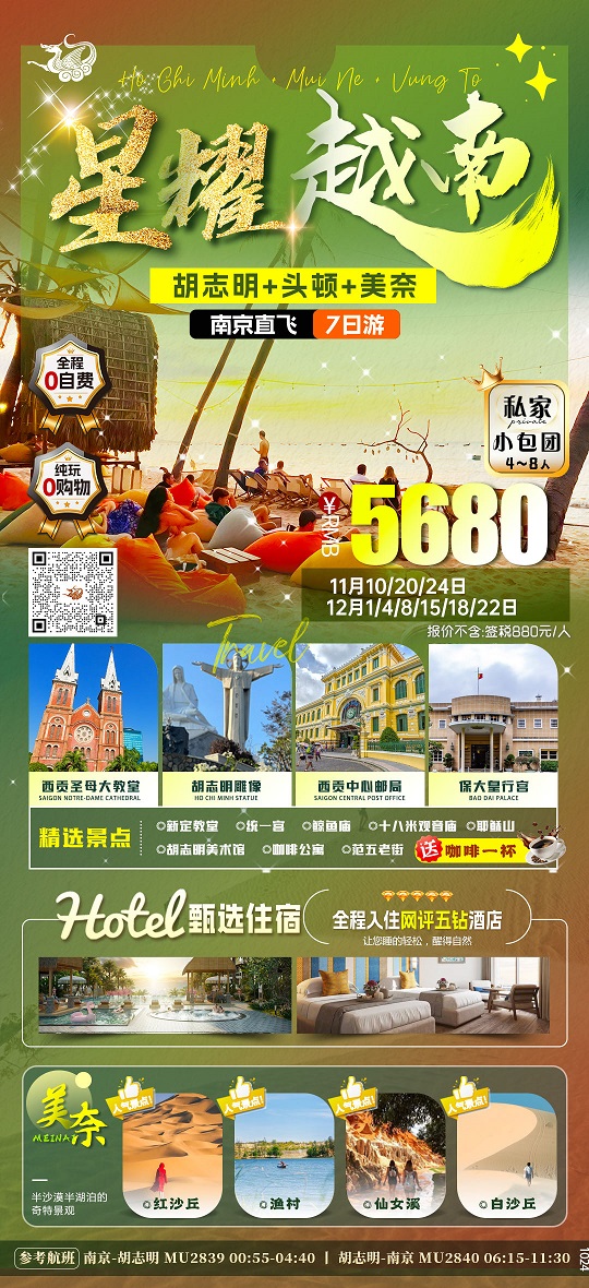11-12月【越南:胡志明 美奈 头顿 芽庄 河内 南京直飞】线路报价