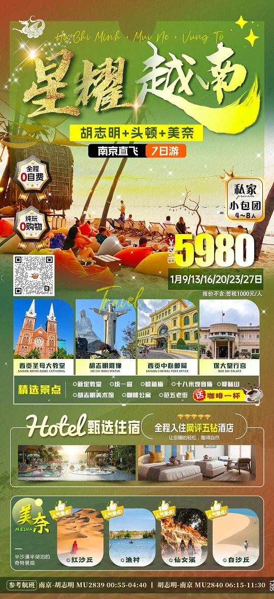 【闪耀越南:胡志明+美奈+头顿5晚7天 0购物0自费 南京直飞】.行程