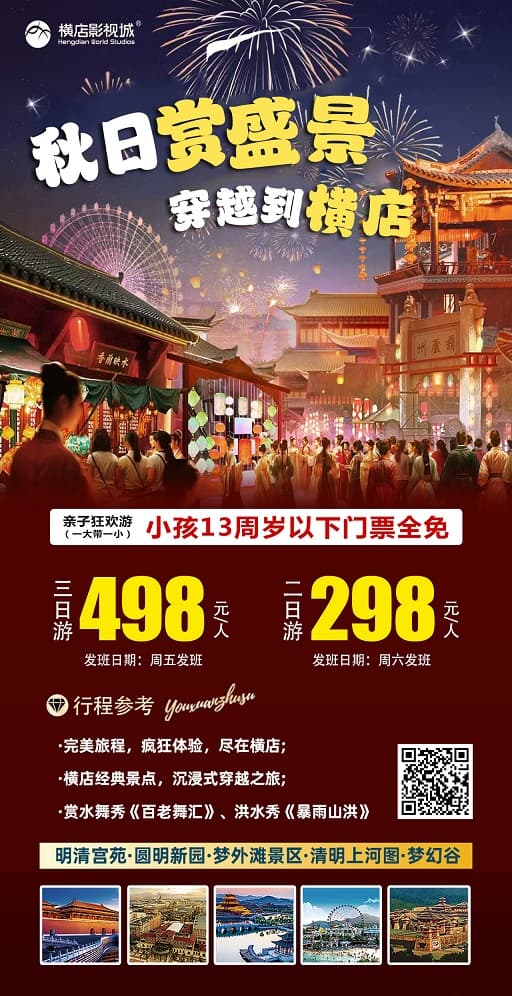 早上6:45凤凰台饭店门口乘车出发赴集影视、旅游、度假、休闲、观光为一体的大型综合性旅游区“中国好莱坞”——横店影视城。